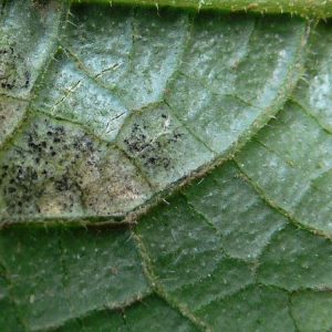 Powdery Mildew are a whole collection of species sharing similar symptoms, these are a white or greyish powdery growth on both sides of the leaves. These fungi produce microscopic air-born dispersal spores from the fungal growth on the plant surface. They have an unusually high water content, enabling them to infect under drier conditions than most other fungal pathogens and tend to be associated with water stress.