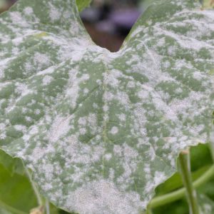 Downy Mildew is different to Powdery Mildew as the white or greyish powdery growth only forms on the underside of the leaf and Downy Mildew favours cool wet conditions. Downy Mildew isn’t in fact a fungal disease at all, it’s a highly specialised parasite, however causes fungal like symptoms. In order for downy mildew to germinate the leaves need to be wet for hours so it’s always advisable not to water foliage and not to water in the evening.